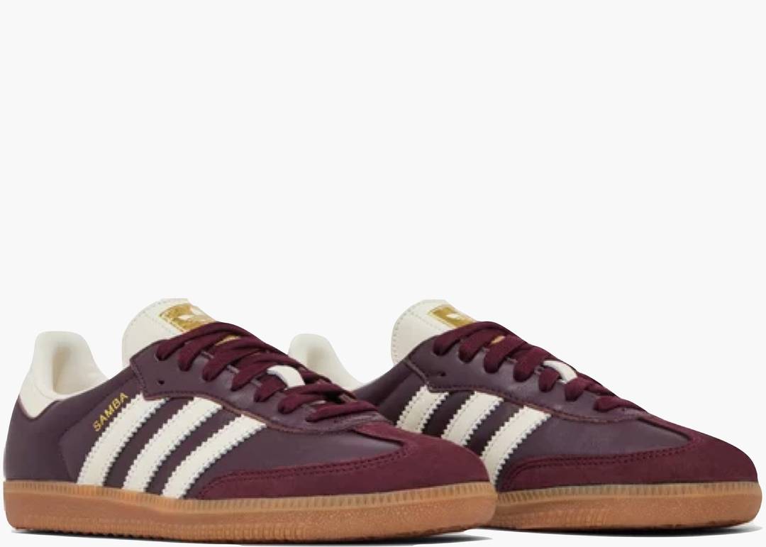 Adidas Samba OG Maroon Gold Metallic tomaia in pelle morbida e la suola in gomma liscia, le classiche 3 strisce seghettate e la punta a T rinforzata sono tutti elementi riconoscibili dei modelli vintage di Adidas che hanno segnato la storia delle sneaker.