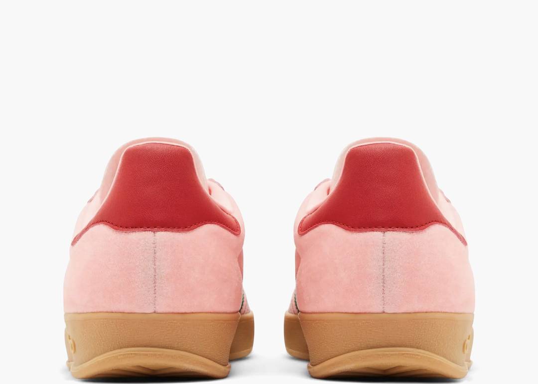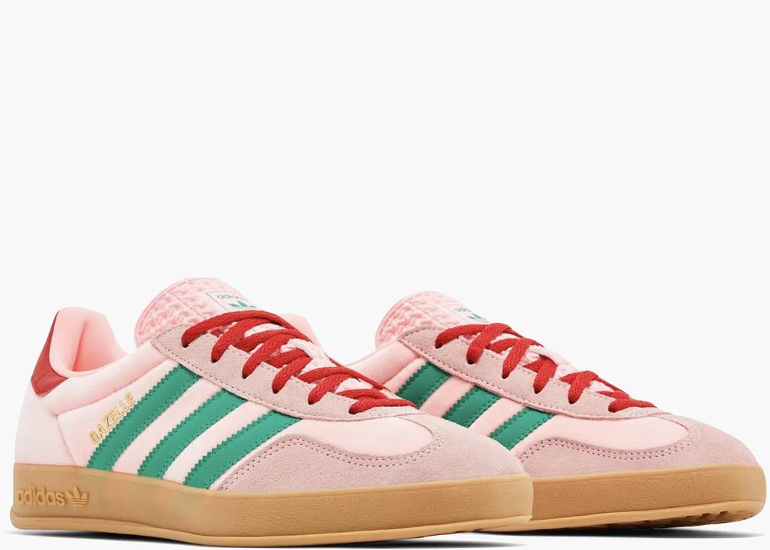 Adidas Gazelle Indoor Pink Velvet - Nate come scarpe da allenamento, le Gazelle hanno ampliato i loro orizzonti diventando un must del lifestyle. La sneaker presenta una tomaia velvet nella colorazione rosa con accenti verdi e rossi a contrasto mentre una suola gum ne completa il design.