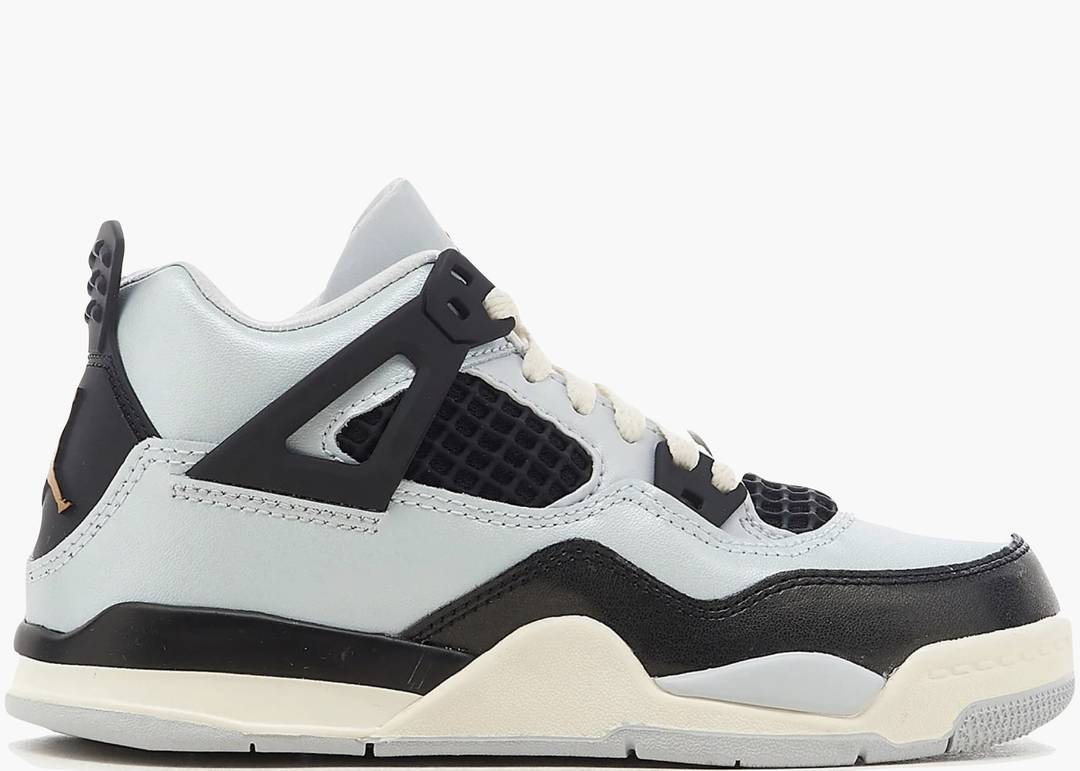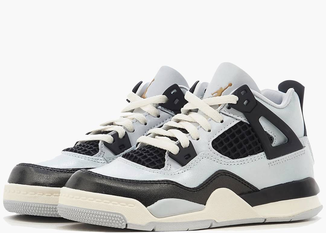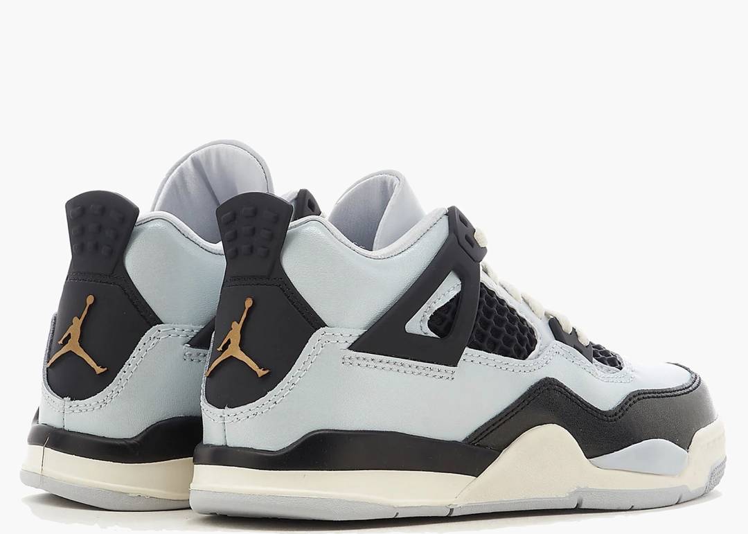 La Jordan 4 Retro Platinum Gold presenta una tomaia color platino lucido, che dona un look moderno e sofisticato alla sneaker. I loghi Jumpman in oro metallizzato sulla linguetta e sul tallone aggiungono un tocco lussuoso, offrendo originalità al design. Gli elementi neri a contrasto, sul parafango, sull'intersuola e sulla linguetta del tallone, creano un equilibrio con la tomaia dai toni chiari.