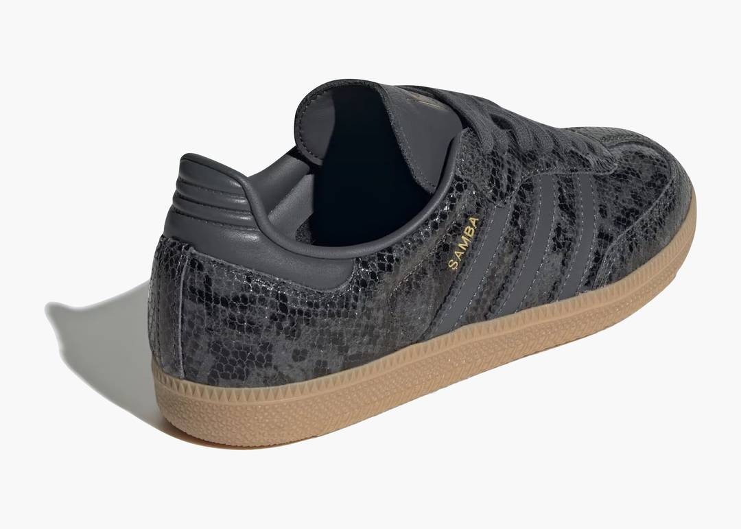 Adidas Samba OG Snakeskin Black - Nata come una sneaker da calcio nella Germania degli anni ‘50, questa silhouette è rimasta sul podio dei modelli più cercati sia dagli appassionati di questo sport che dagli appassionati di moda. Il design della sua tomaia è in pelle effetto snakeskin nero. Caratteristiche sono le tre strisce dentate e la punta in forma di T. La suola gum ne completa il design.