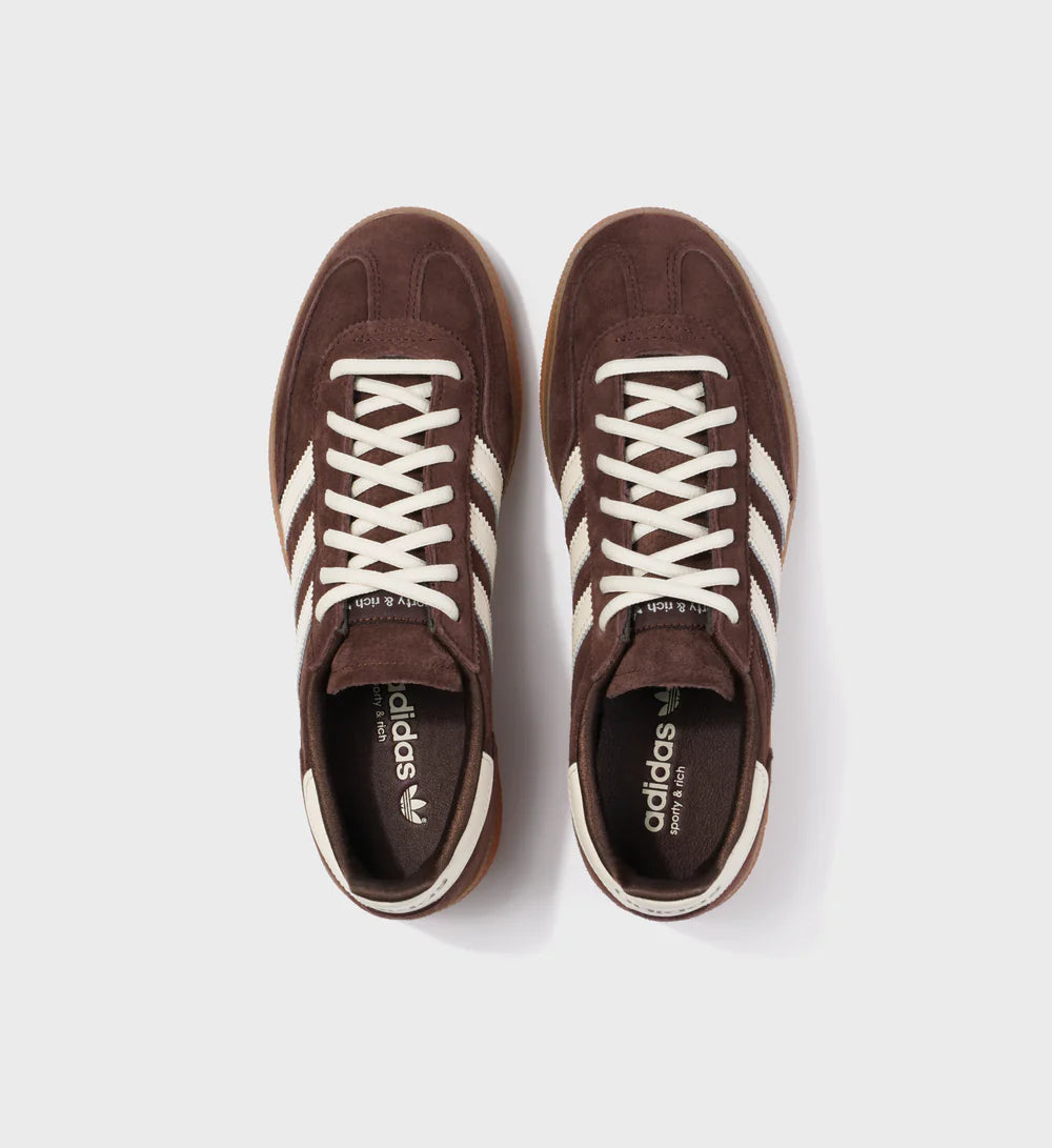 In collaboration with Los Angeles lifestyle brand Sporty & Rich, this sneaker maintains a simple but refined style and is characterized by a brown suede upper and contrasting white details. Sporty & Rich branding is found on the tongue label and side. A gum sole completes the design.