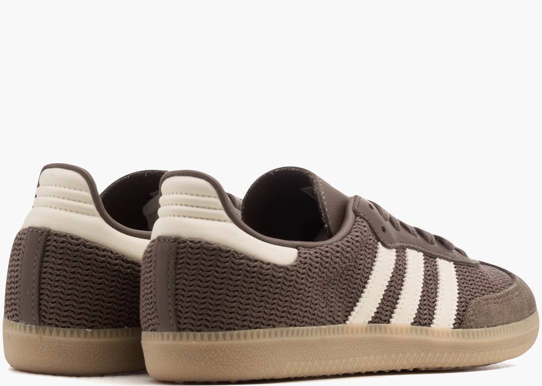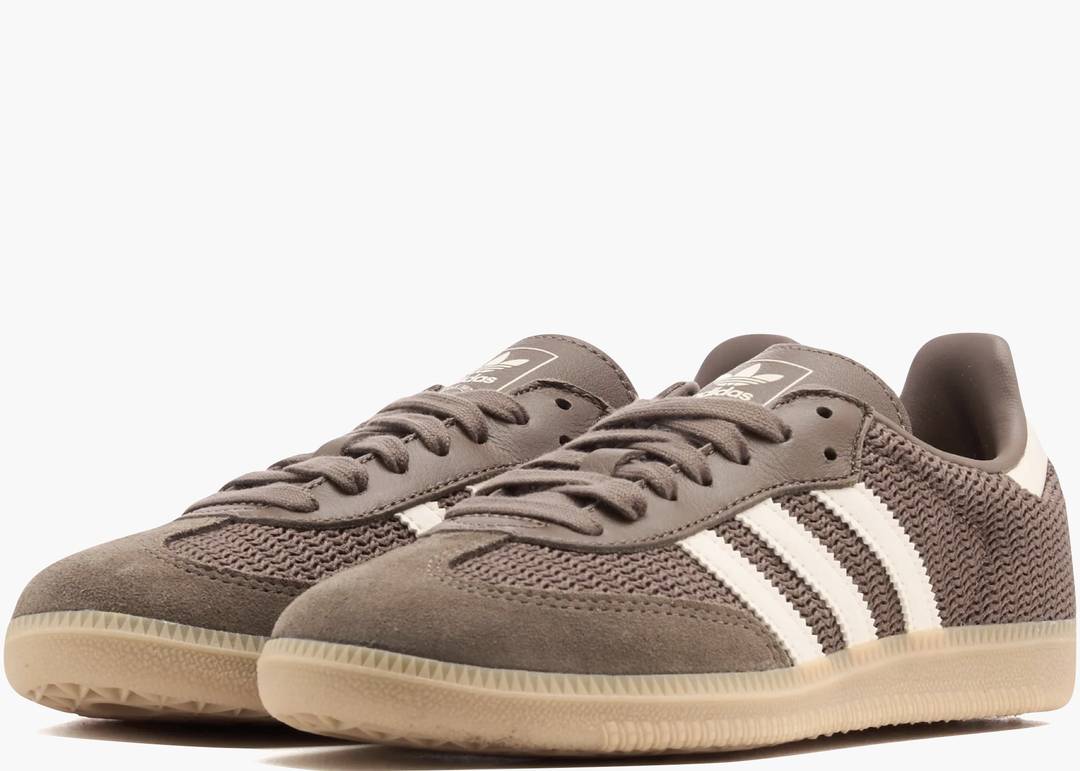 Adidas Samba OG Earth Strata Wonder White - Nata come una scarpa da calcio nella Germania degli anni ‘50, questa silhouette è rimasta sul podio dei modelli più cercati sia dagli appassionati di questo sport che dagli appassionati di moda. Il design della sua tomaia in mesh con rinforzi in pelle scamosciata mantiene l'essenza della sua eredità. Caratteristiche sono le tre strisce dentate e la punta in forma di T. La suola gum ne completa il design.