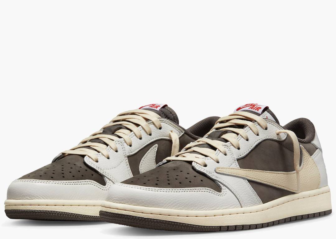 The Jordan 1 Retro Low OG Travis Scott Reverse Mocha features a similar design to the first two releases – an oversized backward-facing Swoosh is featured on the lateral, while a regular Swoosh graces the medial. Signature Travis Scott details will include the “Cactus Jack” logo appearing on the tongue, medial side panel and insole. The rear heel tabs will be branded with Air Jordan Wings on the right and Scott's raw face on the left shoe.
