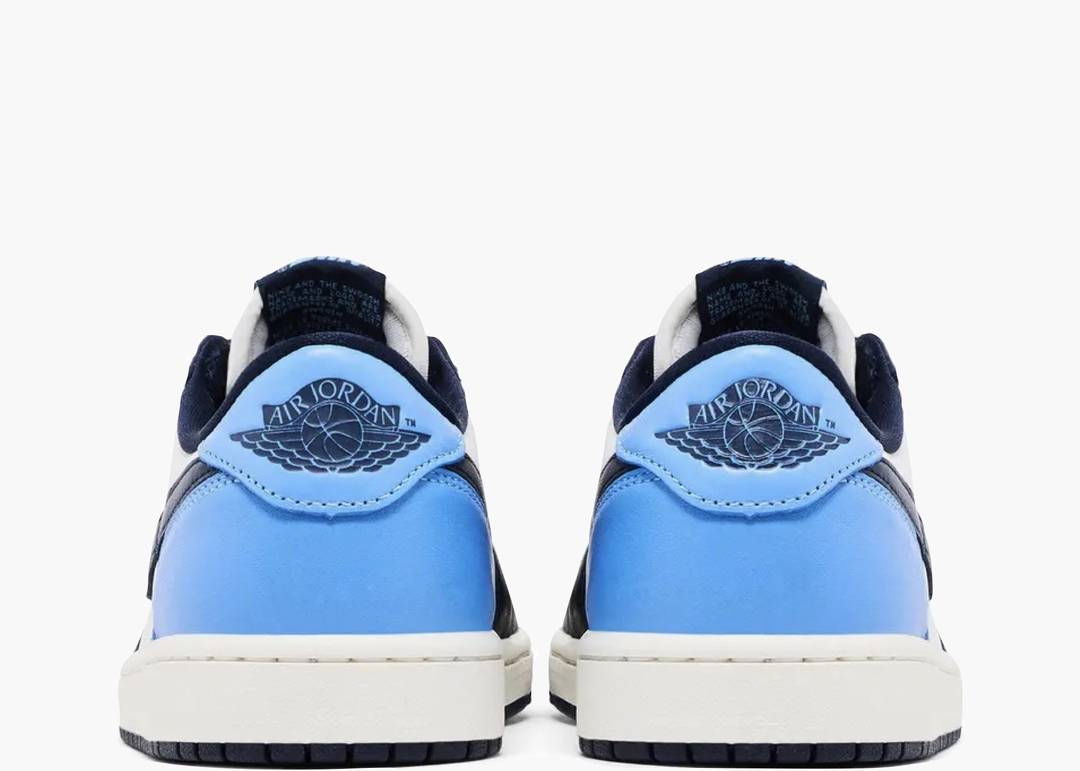 La Jordan 1 Low OG Obsidian UNC si ispira all'alma mater di Michael Jordan, la University of North Carolina. La sneaker ha una tomaia in pelle con un mix di colori White, Obsidian e University Blue, mentre linguetta e fodera in mesh ne completano il design.