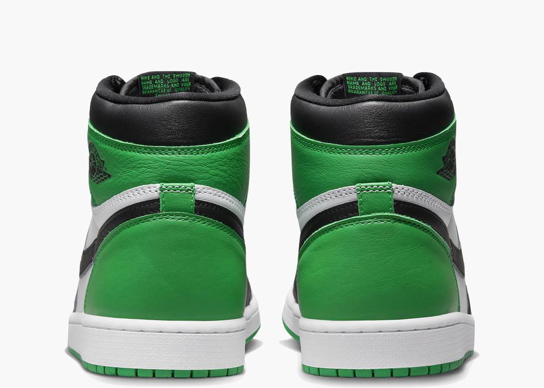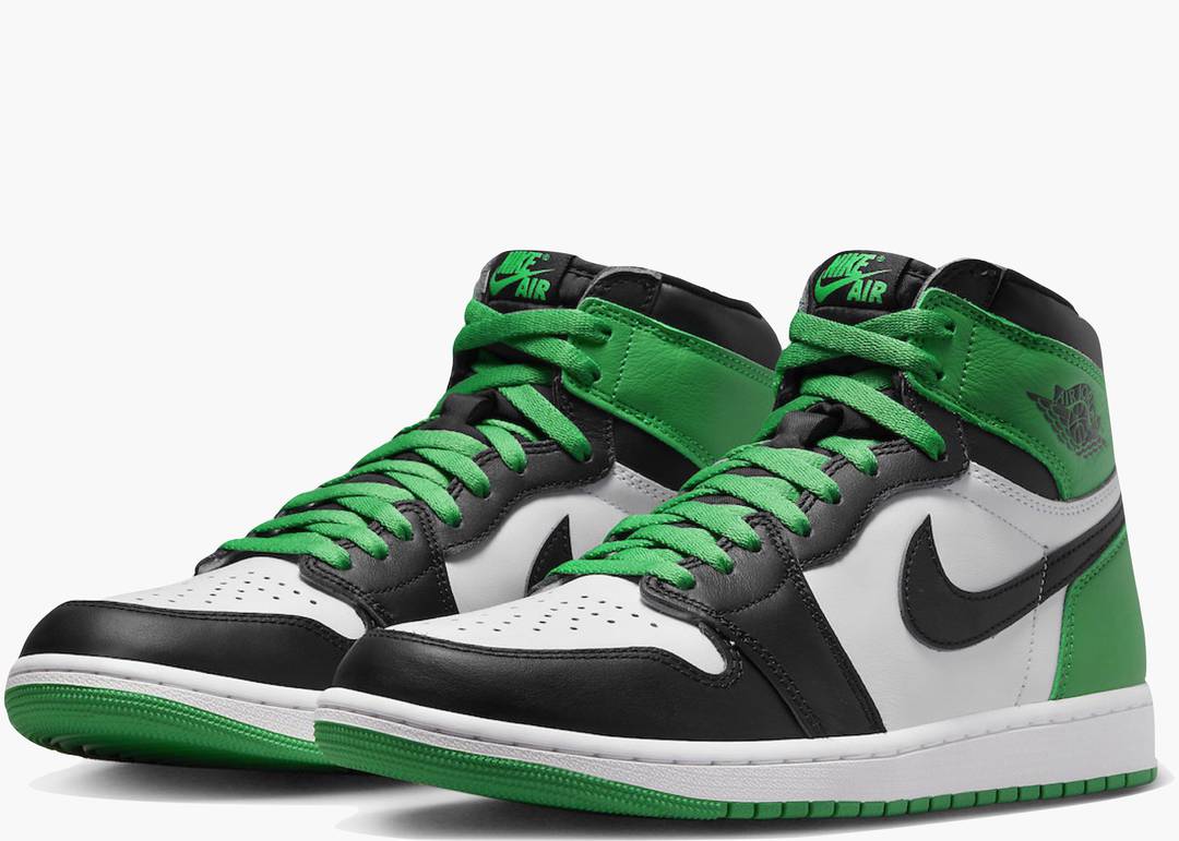 The Jordan 1 Retro High OG Lucky Green comes dressed in a Black, Green, and White color scheme. This shoe features a White leather base with Black and Green overlays. Unlike the 2009 pair, this release will include “Nike Air” on the tongues. A White midsole atop a Green rubber outsole completes the design.