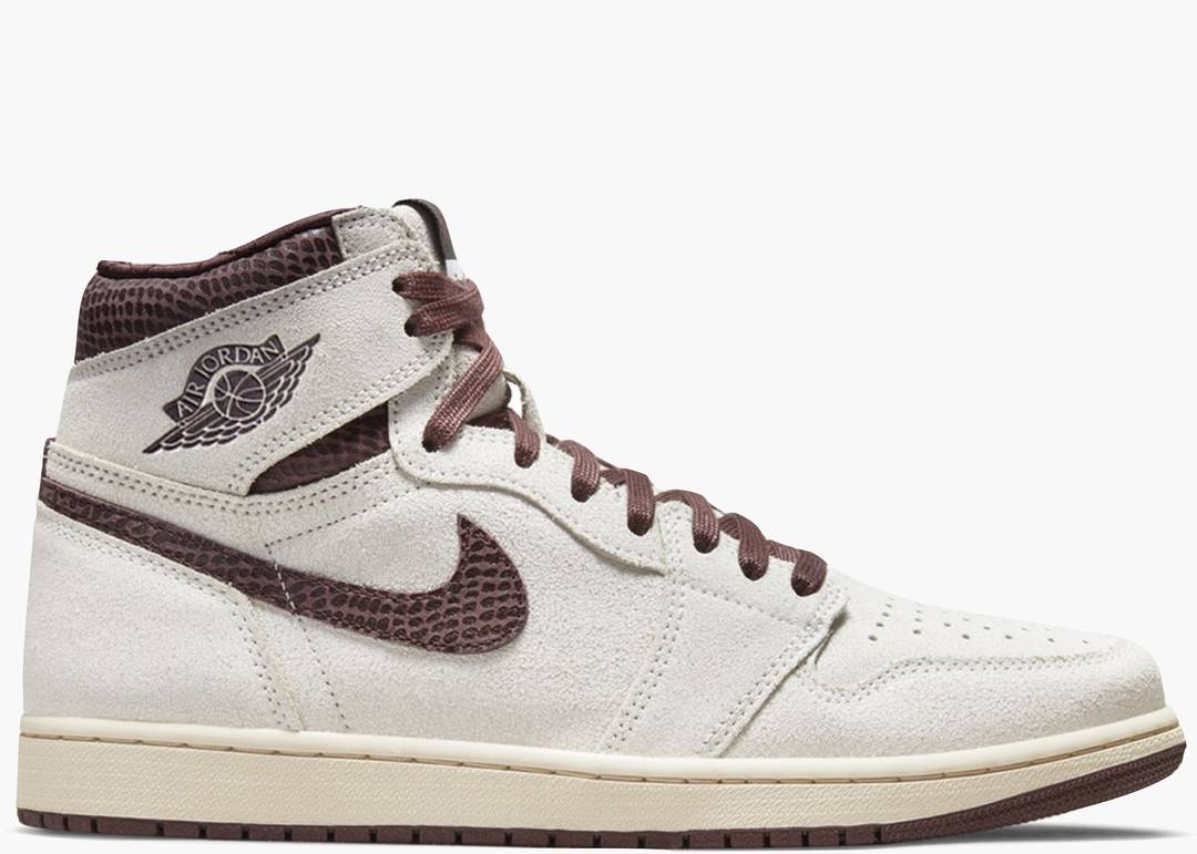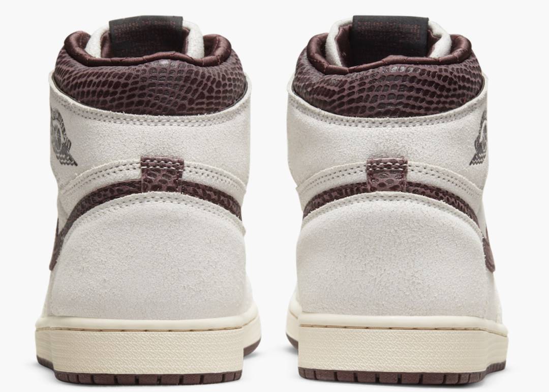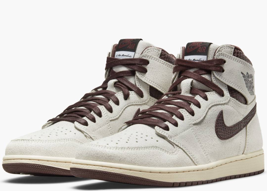 There Nike Air Jordan 1 Retro High OG A Ma Maniére comes dressed in a Sail and Burgundy Crush color scheme. This Air Jordan 1 features a Sail suede upper paired with a premium Reptilian Burgundy Crush finish on the collars and Swoosh. Other details include quilted linings, co-branded tongues and an MJ quote under the ankle cuff that reads, "You have to expect things of yourself before you can do them" along with his signature. Burgundy laces and rubber outsole atop a Sail midsole and a special label on the insoles that reads “Airness by A Ma Maniere for Air Jordan” completes the design.