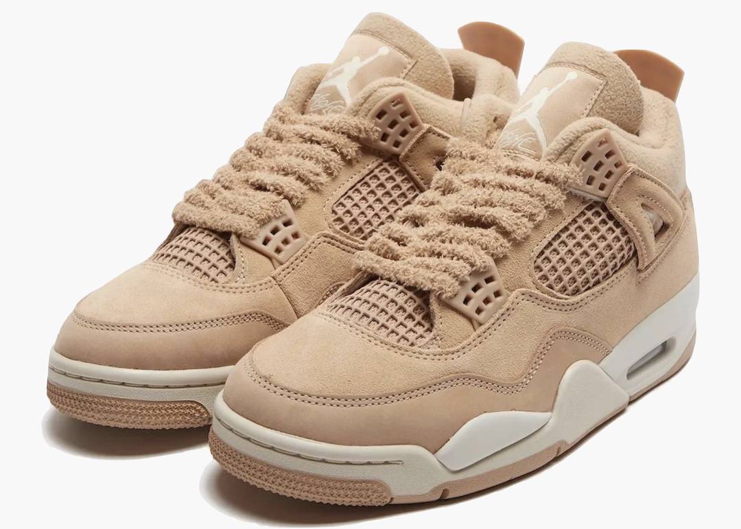 Le Jordan 4 Retro Cozy Girl sono dotate di una tomaia interamente in suede, con una combinazione di colori canapa e marrone chiaro Orewood. Il punto focale della scarpa sono i lacci shaggy ispirati al pile. La colorazione più sobria aggiunge versatilità alla scarpa, mentre la struttura più calda la rende un'opzione perfetta per l'inverno.